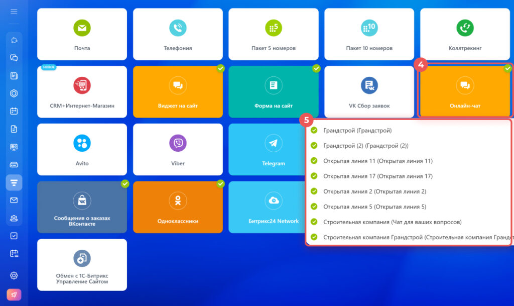 - Выберите нужный канал связи, например, «Онлайн-чат».