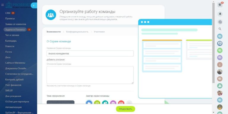 В появившемся окне вписываем название будущей Скрам-команды, описание, выбираем аватар и тему оформления.
